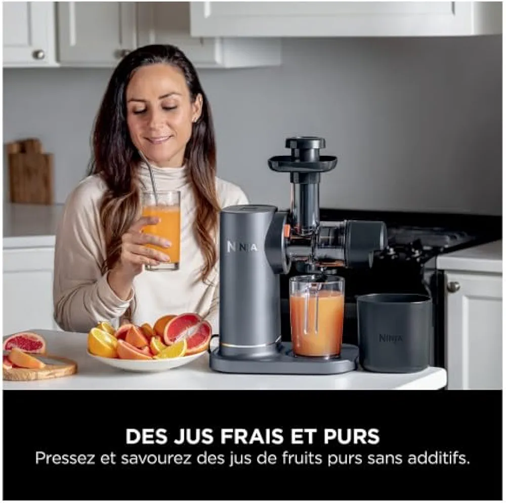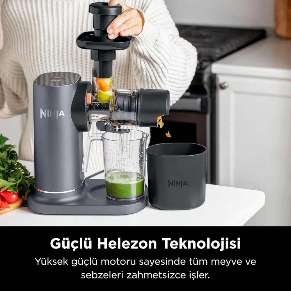 آبمیوهگیری پرس سرد نینجا مدل JC151UK از برند شناختهشده Ninja دستگاهی مدرن و کمجا برای تهیه آبمیوههای تازه، نوشیدنیهای سالم و شاتهای انرژیزا است. این دستگاه با تکنولوژی پرس سرد، عصاره میوه و سبزیجات را بدون ایجاد حرارت زیاد استخراج میکند و باعث حفظ بیشتر ویتامینها، آنزیمها و طعم طبیعی مواد میشود.طراحی جمعوجور این مدل آن را برای آشپزخانههای کوچک، استفاده روزمره و سبک زندگی سالم بسیار مناسب کرده است. قطعات جداشونده و قابل شستوشو در ماشین ظرفشویی نیز تمیزکاری دستگاه را بسیار آسان میکند.