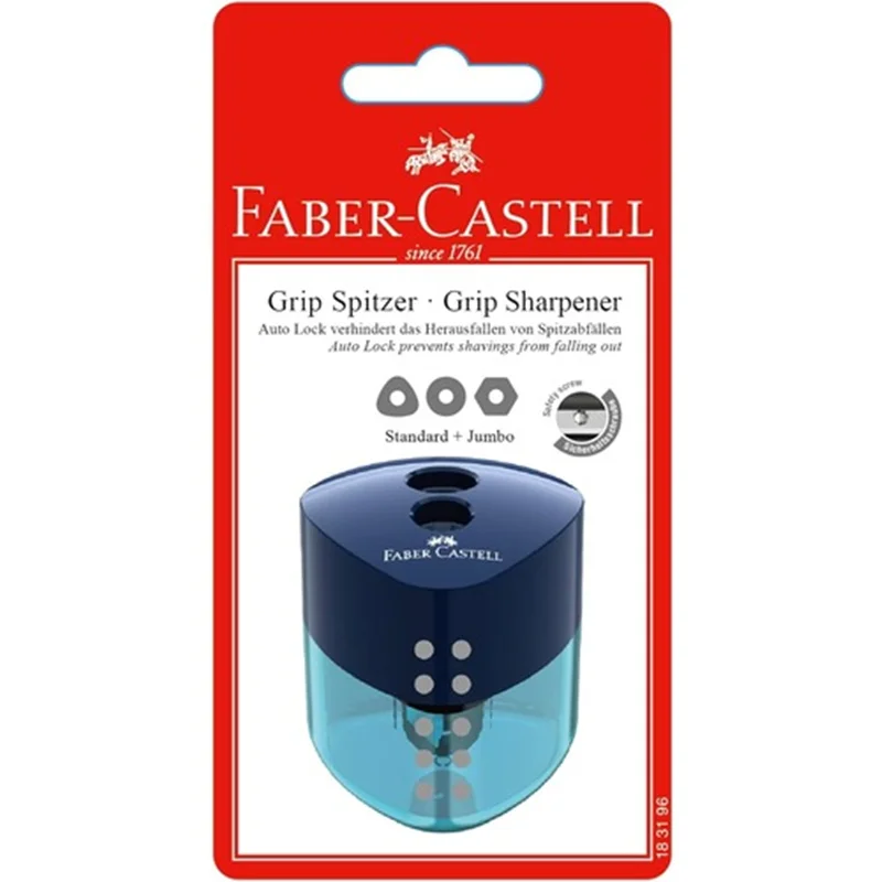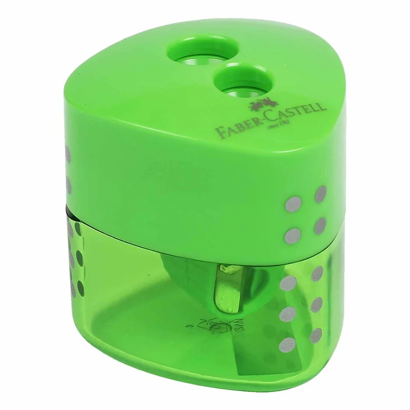 تراش فابرکستل Faber Castell این تراش مخزن دار جزو محصولات سری گریپ فابر کاستل است که مشخصه بسیار بارز آن نقطه هایی از جنس پلاستیک روی این محصولات است که علاوه بر طراحی یک دست این سری و بخشیدن ظاهری متفاوت این نقطه ها باعث میشوند که این سری از محصولات در هنگام استفاده در دست لیز نخورد. این تراش مخزن دار علاوه بر توانایی تراشیدن مداد معمولی به دلیل داشتن یک سوراخ درشت تر توانایی تراشیدن مدادهای آرایشی و مداد های جامبو را نیز دارد.