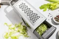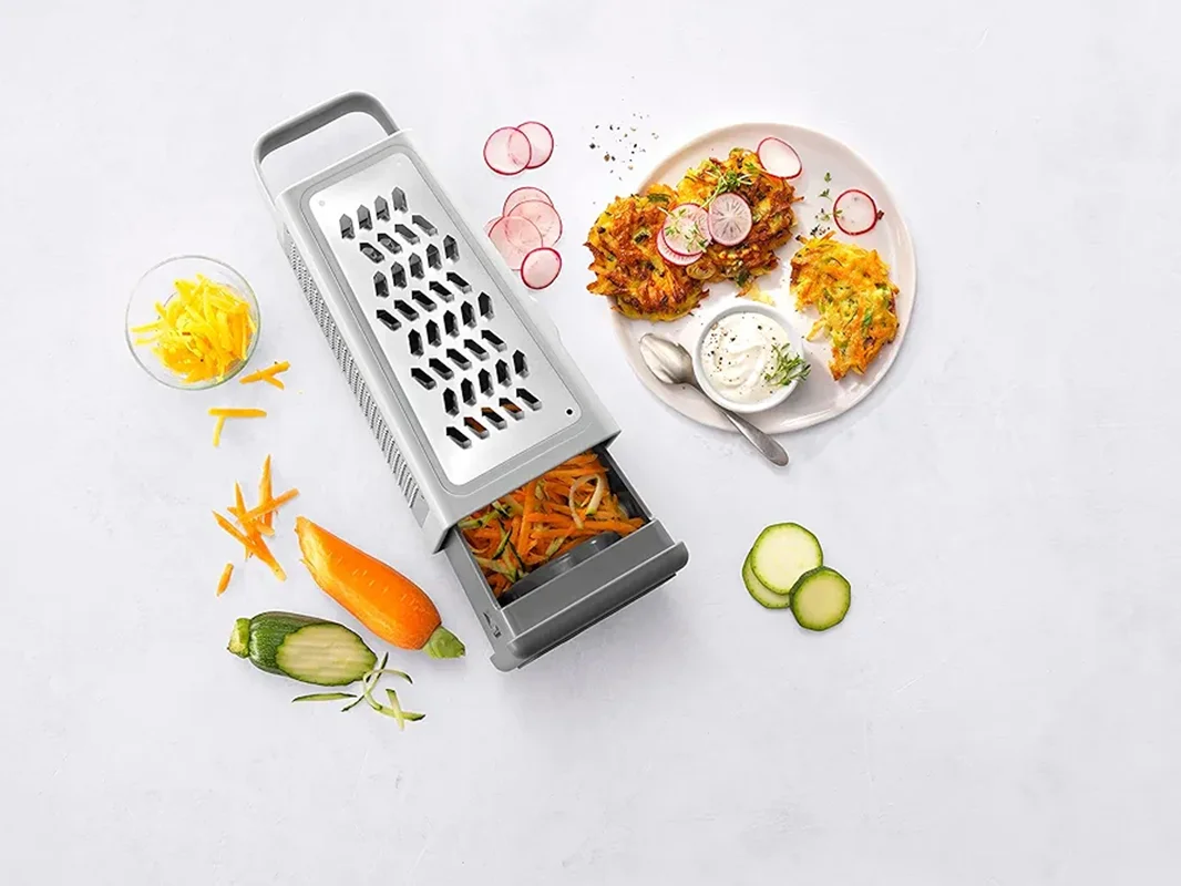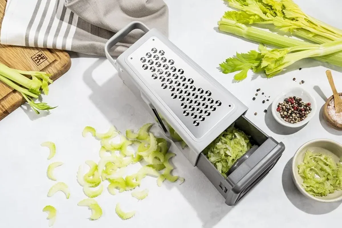 رنده چندکاره Zwilling Z-Cut با طراحی مدرن و کیفیت بالا از استیل ضدزنگ 18/10، ابزاری ایدهآل برای آشپزخانه است. این رنده با 4 سطح مختلف، امکان خرد کردن، برش دادن و رندهکردن انواع میوه، سبزیجات و پنیر را بهراحتی فراهم میکند. فناوری پیشرفته Z-Cut با تیغههای تیز و قابلیت رندهکردن دوطرفه، سرعت و دقت بالایی در کار ارائه میدهد. این محصول با محفظه جمعآوری داخلی و پوشش محافظ، تمیزی و ایمنی را تضمین کرده و برای شستوشو در ماشین ظرفشویی مناسب است. وزن سبک، ابعاد جمعوجور و دوام فوقالعاده، این رنده را به گزینهای ایدهآل برای استفاده روزانه و حرفهای تبدیل کرده است.
