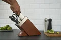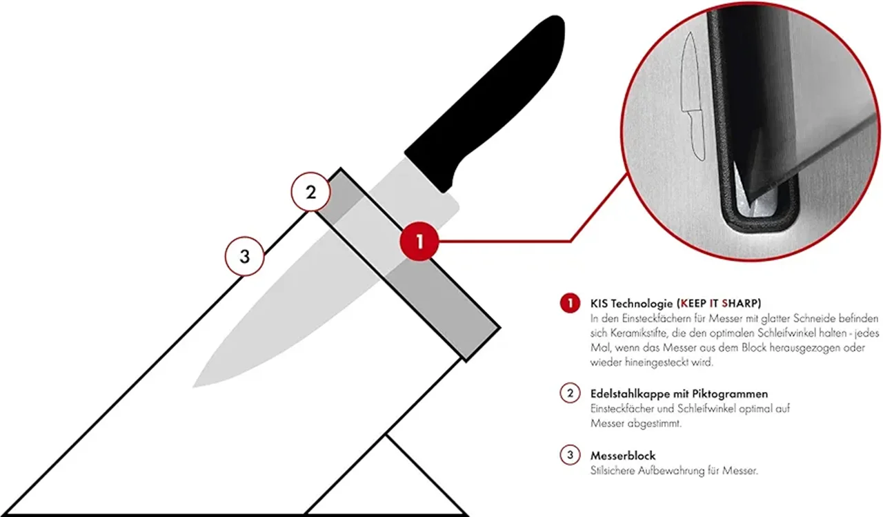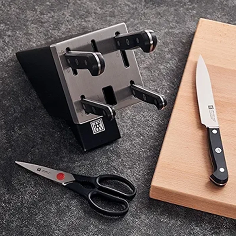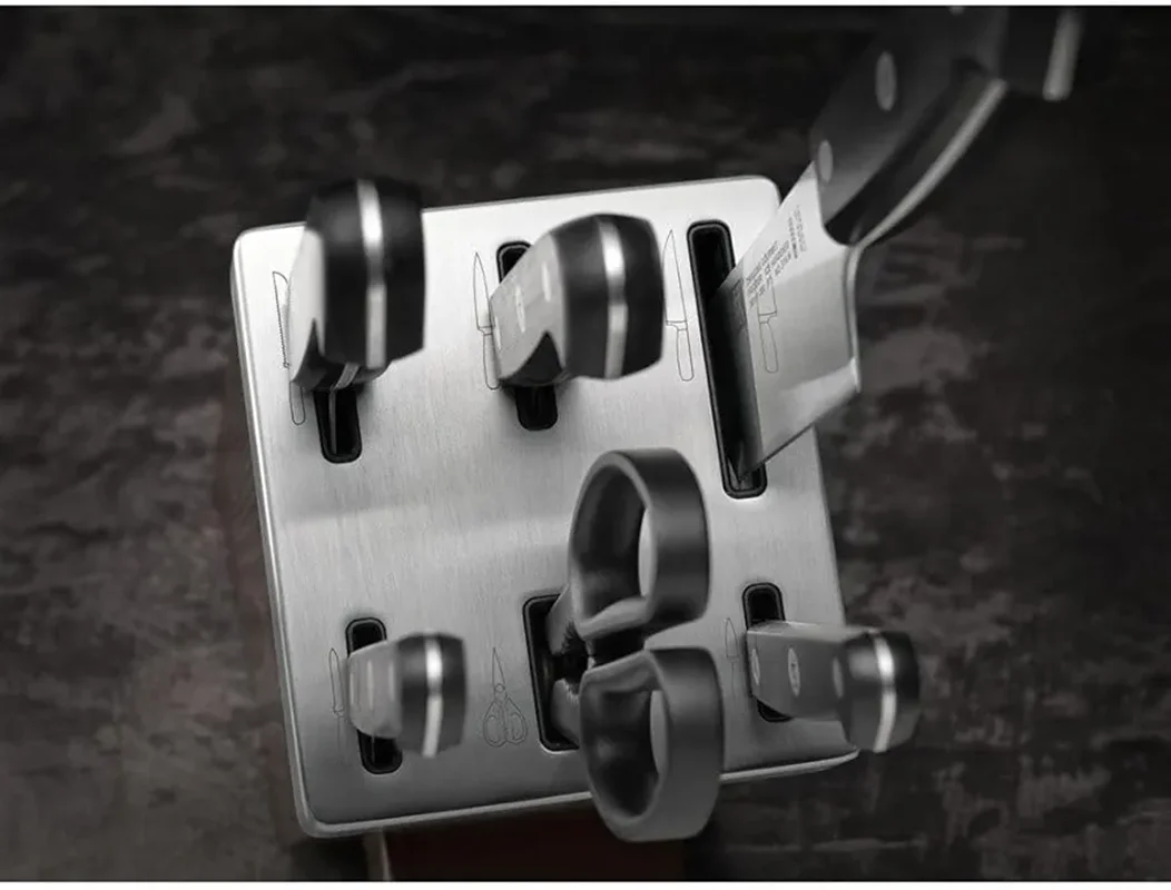 ست چاقوی 7 پارچه زولینگ آلمان یک مجموعه حرفهای و باکیفیت برای آشپزخانه است که شامل چاقوی پوستکنی و تزئین (10 سانتیمتر)، چاقوی همهکاره (13 سانتیمتر)، چاقوی گوشت (16 سانتیمتر)، چاقوی سرآشپز (20 سانتیمتر)، چاقوی نان (20 سانتیمتر) و قیچی چندمنظوره (20 سانتیمتر) میباشد. این ست دارای تیغههای بادوام و تیز با فناوری Ice-Hardened Friodur است که علاوه بر استحکام و انعطافپذیری، در برابر خوردگی نیز مقاوم میباشد. دستههای ارگونومیک با طراحی سه پرچ و محافظ انگشت یکپارچه، استفادهای ایمن و راحت را فراهم میکنند. بلوک چوبی از جنس چوب اش، برای نگهداری ایمن و شیک چاقوها و همچنین تیز کردن آنها با زاویه بهینه، طراحی شده است. این ست با تیغههای استیل ضدزنگ مخصوص و سرامیکهای تیزکننده داخلی، مناسب برای چاقوهای Zwilling Gourmet بوده و شستشوی دستی برای دوام بیشتر توصیه میشود. این محصول در آلمان ساخته شده و کیفیتی بینظیر را ارائه میدهد.