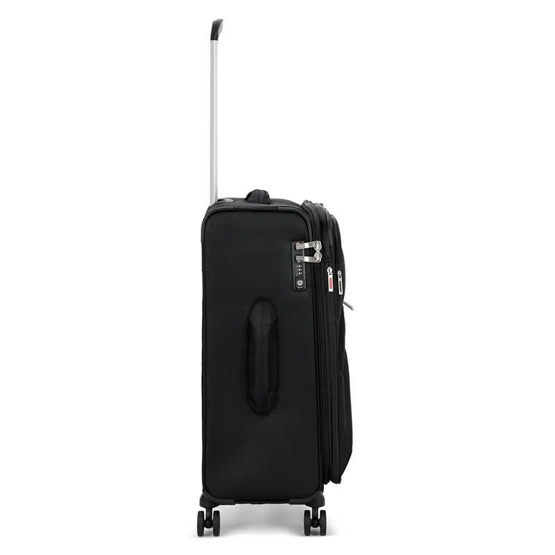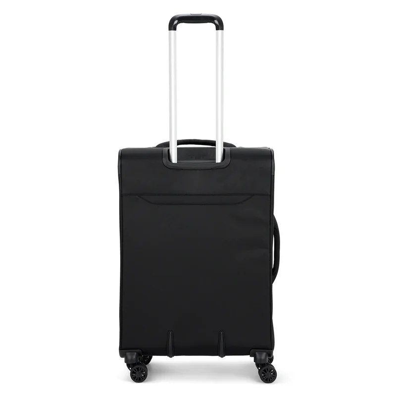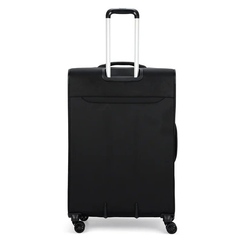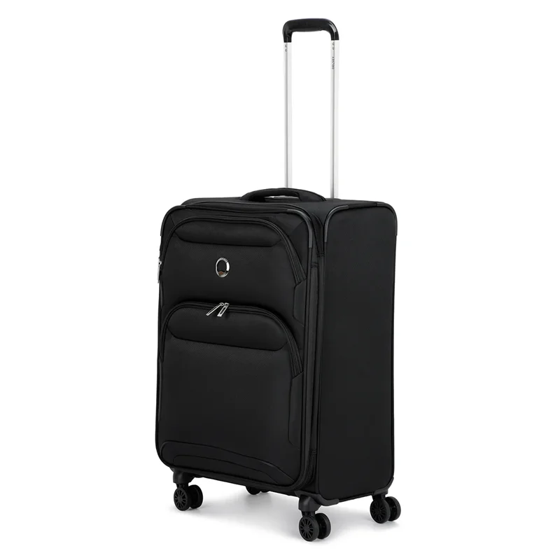 ست Delsey Sky Max از پلیاستر فشرده و با کیفیت بالا ساخته شده است؛ متریالی که انعطافپذیر، سبک و در عین حال بسیار مقاوم در برابر پارگی، خط و خش و سایش است. این طراحی نرمبدنه، آن را به گزینهای ایدهآل برای سفرهای کاری، زمینی و پروازی تبدیل کرده است. همچنین انعطاف پارچه باعث میشود در صورت پر بودن، بدنه چمدان تا حدی فرم خود را تنظیم کرده و بهراحتی در فضاهای محدود جا شود.