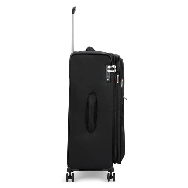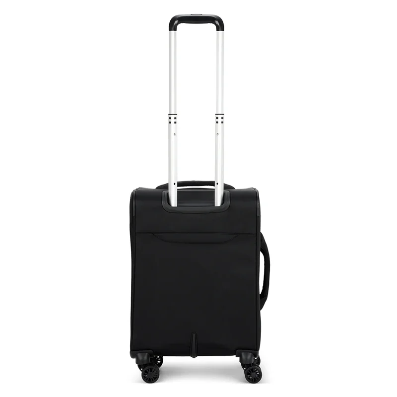برخلاف بسیاری از چمدانهای نرمبدنه، مدل Sky Max به چرخهای دوگانه مقاوم و روان مجهز شده که امکان حرکت نرم و بیدردسر در مسیرهای مختلف را فراهم میسازد. چرخها به گونهای طراحی شدهاند که فشار کمتری به دست وارد کرده و حتی در مسیرهای ناهموار یا فرودگاههای شلوغ عملکرد عالی دارند.