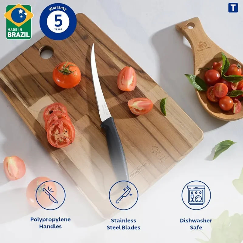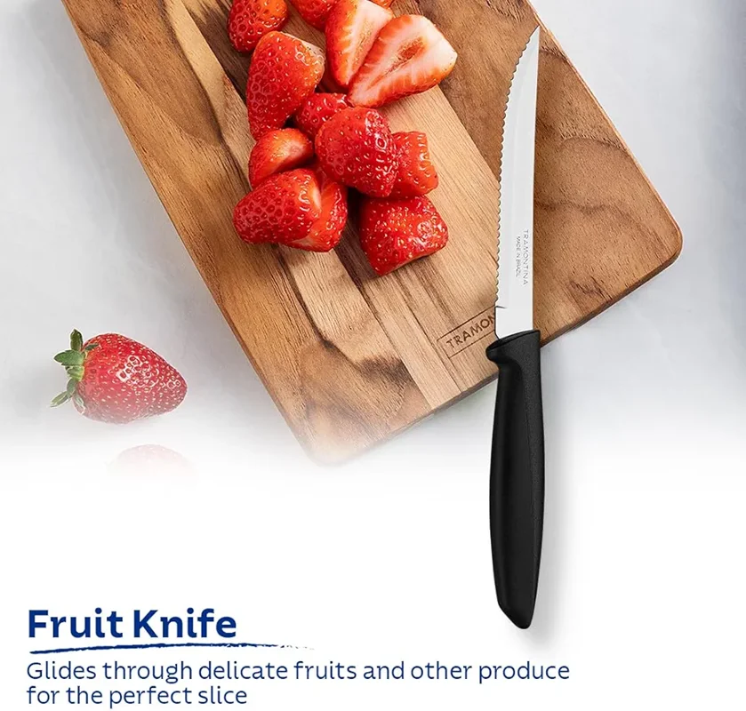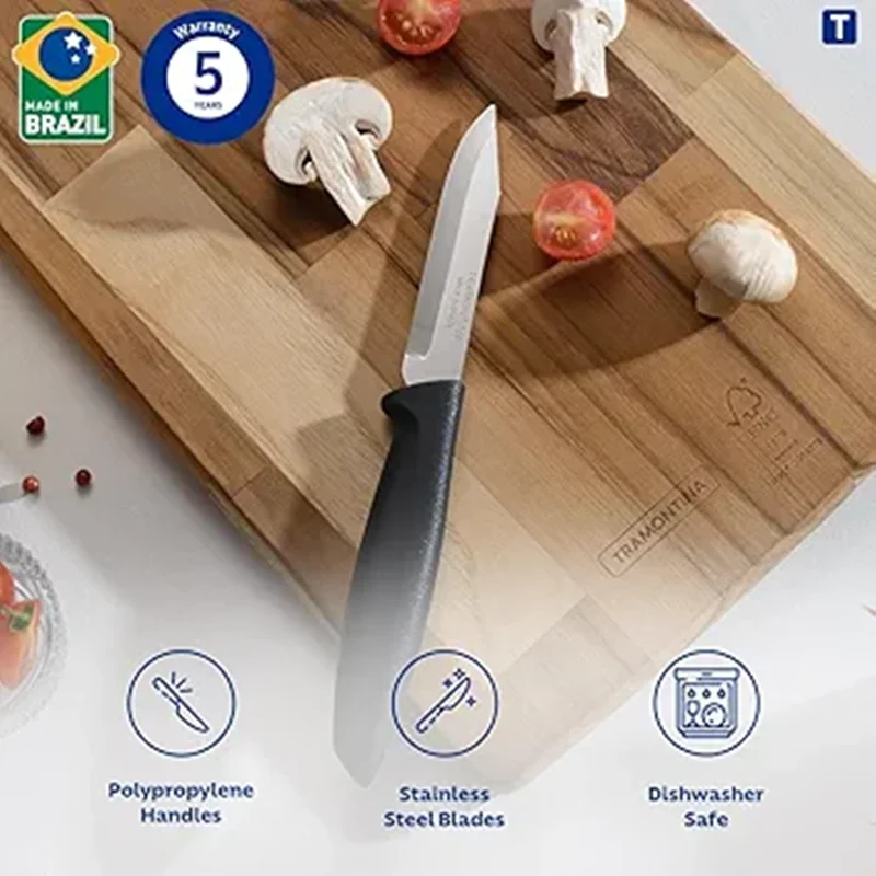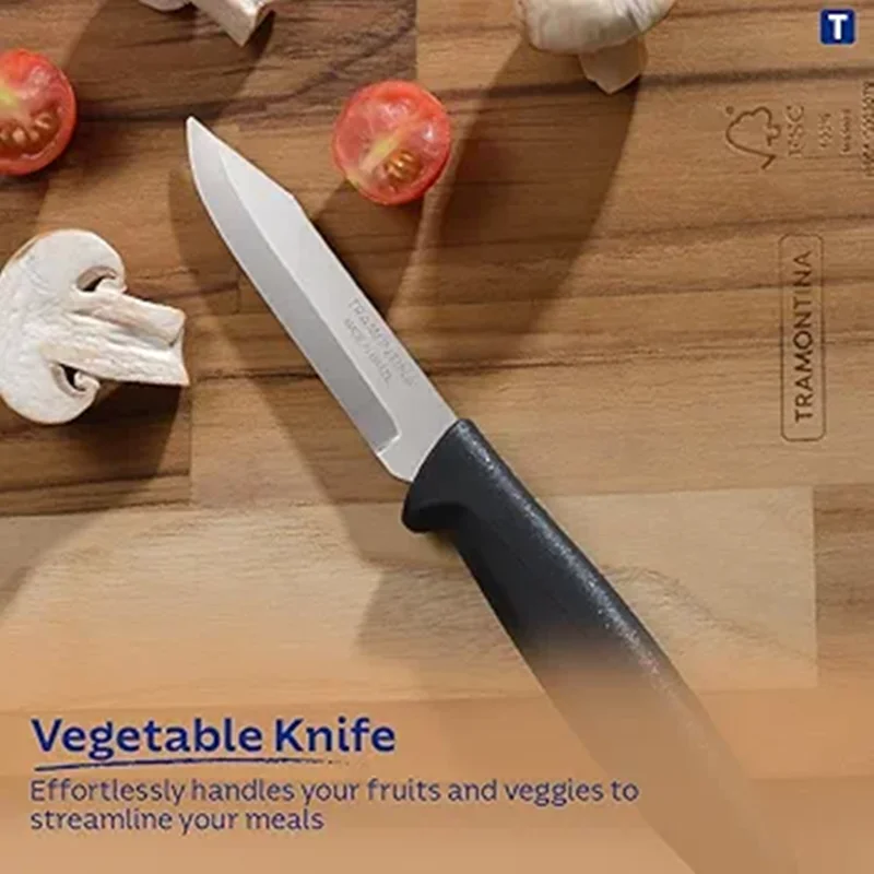 ست چاقوی استیل ضد زنگ ۳ عددی از ترامونتینا با تیغههای فولادی ضد زنگ و حرارتدیده برای برش دقیق و قدرت بالا است. دستههای پلیپروپیلن مشکی آنها دوام و راحتی را فراهم میکنند. این چاقوها قابل شستشو در ماشین ظرفشویی بوده و برای پوستگیری، برش و کارهای مختلف آشپزی ایدهآل هستند.