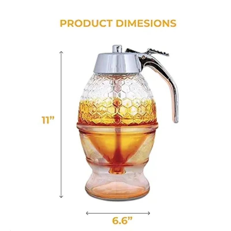 ظرف عسل با طراحی هوشمندانه، به شما این امکان را میدهد که عسل یا هر مایع مشابه مانند شربت افرا یا شکلات را بدون ریختن اضافی و به راحتی استفاده کنید. این ظرف دارای سیستم فشاری است که به محض فشار دادن قسمت وسط آن، مایع از قسمت پایین ظرف خارج میشود و به محض رها کردن آن، جریان مایع متوقف میشود بدون اینکه قطرهای ریخته شود. طراحی شیشهای جذاب با شکل زنبورعسل، همزمان سبکی و دوام بالایی را ارائه میدهد. همچنین، این ظرف دارای یک درپوش انتهایی است که عسل را تازه نگه میدارد و از خشک شدن آن جلوگیری میکند. ظرفیت آن ۱ فنجان (۸ اونس) است و میتوان از آن برای سرو عسل، شربت یا حتی شکر استفاده کرد. این ظرف عسل میتواند هدیهای هوشمندانه و دوستداشتنی برای خانواده، دوستان یا همکاران شما باشد.
