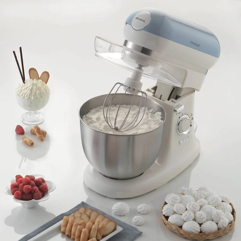میکسر پایه غذاساز Ariete Vintage، ماشین آشپزخانه با کاسه استیل 5.5 لیتری، 1200 وات غذاساز قدرتمند: غذاساز یک دستگاه قدرتمند با موتور 1200 وات و قدرت موتور قفل شده 2400 وات است. این شامل یک کاسه بزرگ 5.5 لیتری استیل ضد زنگ است که آن را برای جابجایی مقادیر زیادی غذا مناسب می کند. ویژگی ها و عملکردها: ماشین آشپزخانه قدیمی Ariete دارای 7 سرعت قابل تنظیم همراه با عملکرد پالس است. با یک حرکت سیاره ای عمل می کند و از اختلاط و ترکیب کامل برای نیازهای آشپزی شما اطمینان حاصل می کند. علاوه بر این، ماشین آشپزخانه قدیمی Ariete سبک را با عملکرد ترکیب می کند و دارای طراحی یکپارچه سازی با سیستمعامل است که ظرافت را به هر دکوراسیون آشپزخانه اضافه می کند.
