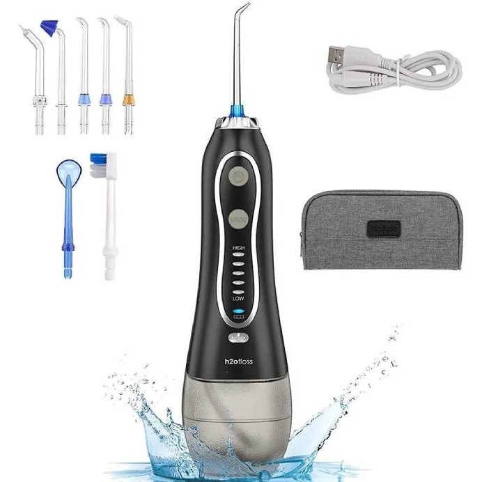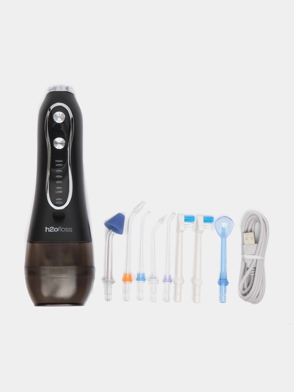واتر جت H2OFLOSS با طراحی بیسیم و باتری لیتیومی 2500 میلیآمپرساعتی، تا 5 ساعت قابل استفاده است و به راحتی از طریق USB شارژ میشود، که آن را برای سفر ایدهآل میکند. این دستگاه با جریان آب پرفشار، 99.99% پلاک و باقیمانده غذا را از بین دندانها و زیر خط لثه پاک میکند، مشکلاتی مانند بوی بد دهان، حساسیت دندان و مشکلات ارتودنسی را بهبود میبخشد. دارای 5 نازل چندکاره با قابلیت چرخش 360 درجه و طراحی ضد آب IPX7 برای استفاده ایمن در حمام است.