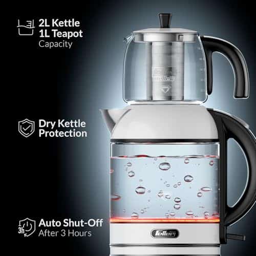 کتری و چایساز 2 در 1 Feller Germany مدل TS288 با توان قدرتمند 2200 وات، ترکیبی از طراحی مدرن و عملکرد حرفهای است که با کتری شیشهای 2 لیتری و قوری 1 لیتری، تجربهای سریع، ایمن و لذتبخش از تهیه چای فراهم میکند. این محصول با تکنولوژی آلمانی، کنترل هوشمند Strix و سیستم محافظت در برابر جوشیدن بیش از حد، ایمنی و دوام بالا را تضمین میکند. قابلیت نگهداری گرما، فیلتر ضدچکه، و طراحی دو منظوره برای استفاده همزمان بهعنوان کتری و چایساز، آن را به انتخابی عالی برای خانوادهها و مهمانیها تبدیل کرده است.