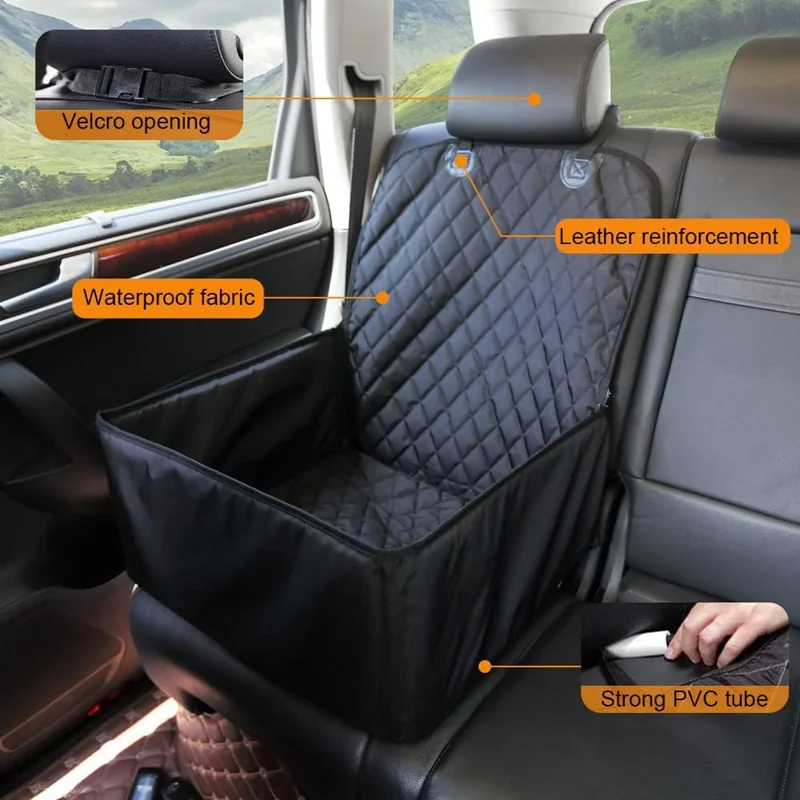 کاور صندلی خودرو سگ Gluckluz کاور صندلی خودرو با کیفیت بالا و کاملا ضد آب با این کاور دیگر لازم نیست نگران کثیفی، چسبیدن موی حیوانات، خط افتادن و یا پاره شدن صندلی خودرو خود باشید. این کاور ضد آب است، به راحتی تمیز میشود، و به راحتی نصب میشود. دارای جیب بزرگ طراحی شده برای قرار دادن وسایل مورد نیاز حیوان خانگی شما. این کاور دارای یک بند اضافه است که با نصب کردن آن به قفل های پشتی کاور میتوانید کاور را در خودرو های فاقد تکیه گاه سر در صندلی عقب نیز نصب کنید.سایز استاندارد، مناسب برای تمامی خودرو های سواری و اس یو وی.