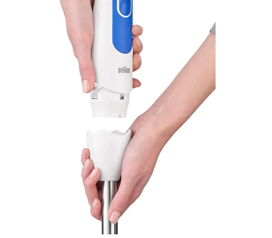 گوشکوب برقی Braun MultiQuick 3 مدل MQ3035 Sauce ترکیبی از قدرت، دقت و طراحی ارگونومیک است که آشپزی روزمره را به تجربهای حرفهای تبدیل میکند. این دستگاه با موتور قدرتمند ۷۰۰ وات و فناوری SplashControl از پاشش مواد جلوگیری کرده و محیطی تمیز را هنگام کار فراهم میسازد. تیغههای پیشرفتهی PowerBell Plus برش سریعتر و یکنواختتری ایجاد میکنند، در حالیکه دو سطح سرعت کنترل کاملی بر روی بافت مواد غذایی به شما میدهد. همراه با لیوان مدرج ۶۰۰ میلیلیتری بدون BPA، خردکن ۵۰۰ میلیلیتری و ویسک فلزی حرفهای، برای تهیهی انواع نوشیدنی، سس، خامه و خردکردن سبزیجات و مغزها کاملاً مناسب است. قطعات دستگاه بهراحتی در ماشین ظرفشویی قابل شستوشو هستند و طراحی سبک و خوشدست آن کار را لذتبخشتر میکند.